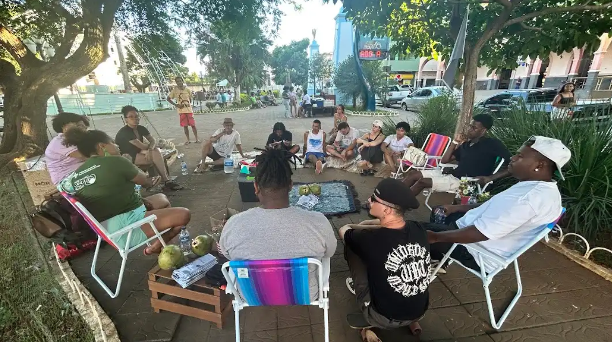 A atividade aconteceu na Praça Getúlio Vargas, ponto central e simbólico da cidade, com o objetivo de fortalecer vínculos entre os fazedores de cultura da região, promover trocas de vivências e incentivar a elaboração de projetos para acesso a editais e políticas públicas culturais.
